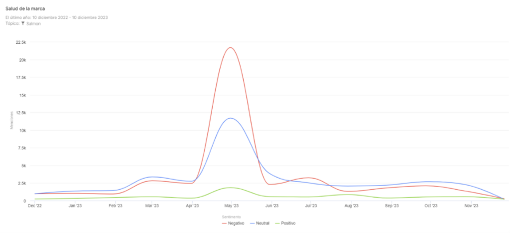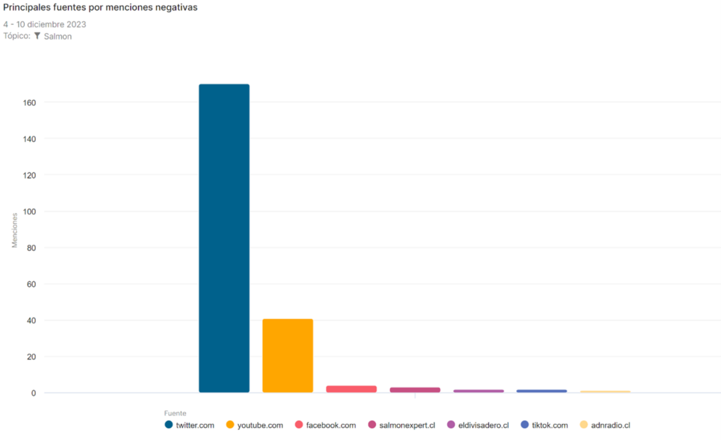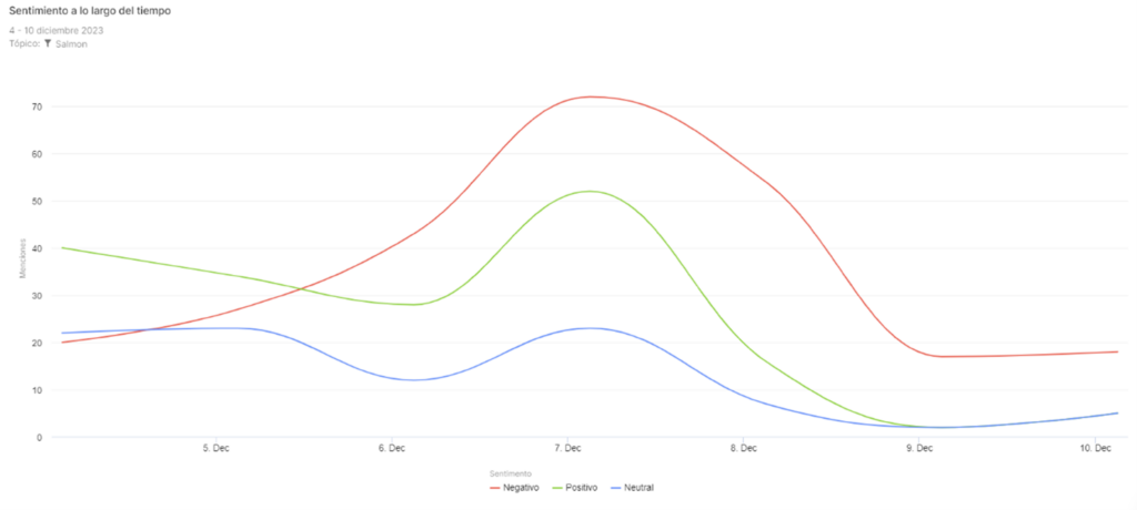El objetivo de este informe es presentar las conclusiones más relevantes en relación con la presencia en medios de comunicación y redes sociales basadas en textos, imágenes y videos asociados a la industria salmonera nacional entre el día 4, a las 00:01 horas, hasta las 18:00 del 10 de diciembre del 2023. La metodología de este reporte se sustenta en el análisis cuantitativo y cualitativo de data obtenida por medio de herramientas de “social listening”, filtradas por medio de criterio humano y con el apoyo de análisis de inteligencia artificial.